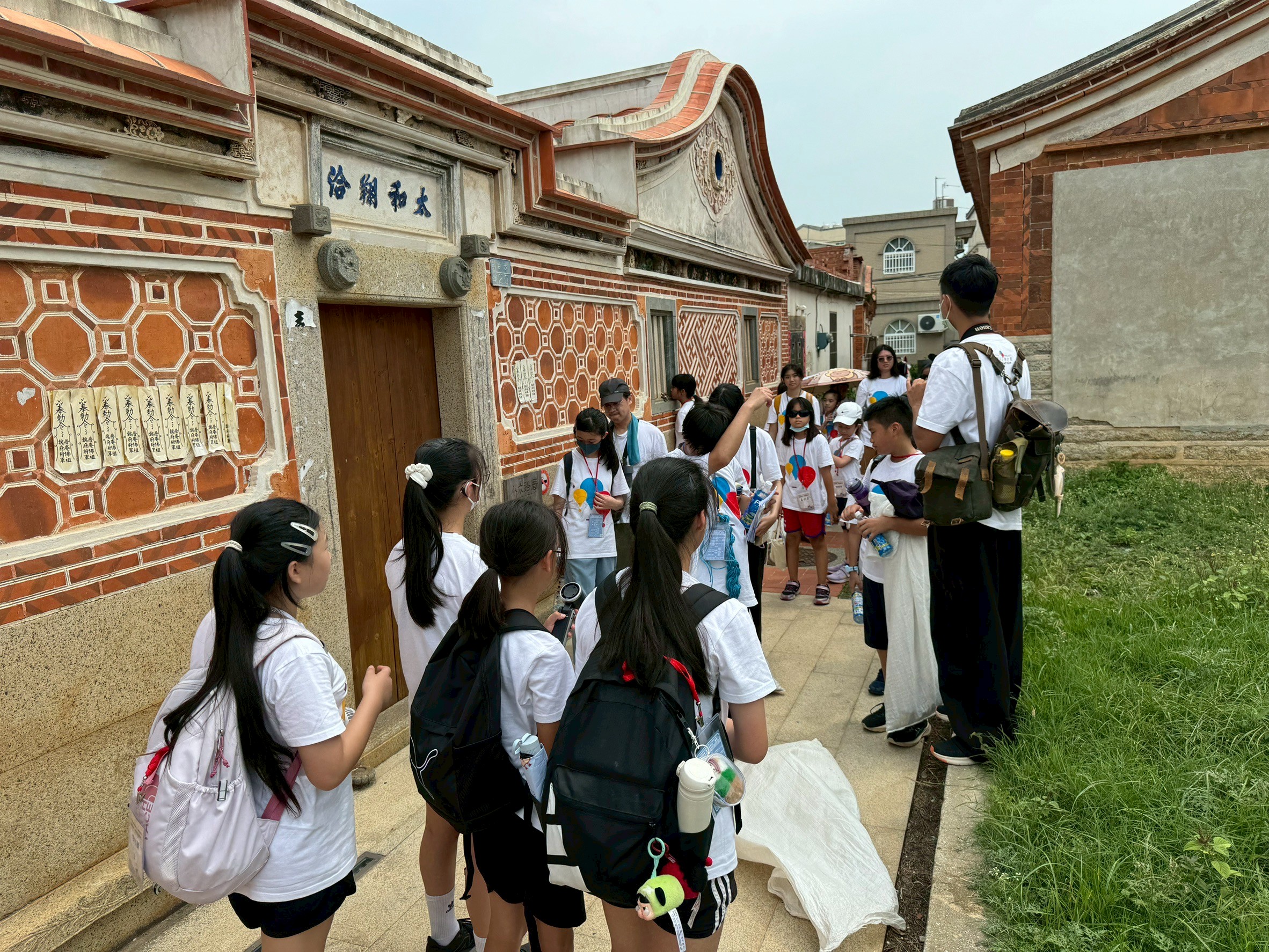 在盤山社區與水頭聚落的走讀中,孩子們一邊散步、一邊與聚落長輩和老師交流,從對話中理解金門的日常樣貌,並透過觀察花磚、泥塑與剪黏工藝,認識閩式建築的細膩美感。由翁炳炎先生帶領的盤山村走讀,更讓孩子發現,即使盤山村現代建築比例較高,只要細心觀察與詢問,仍能看見隱藏其中的文化痕跡。