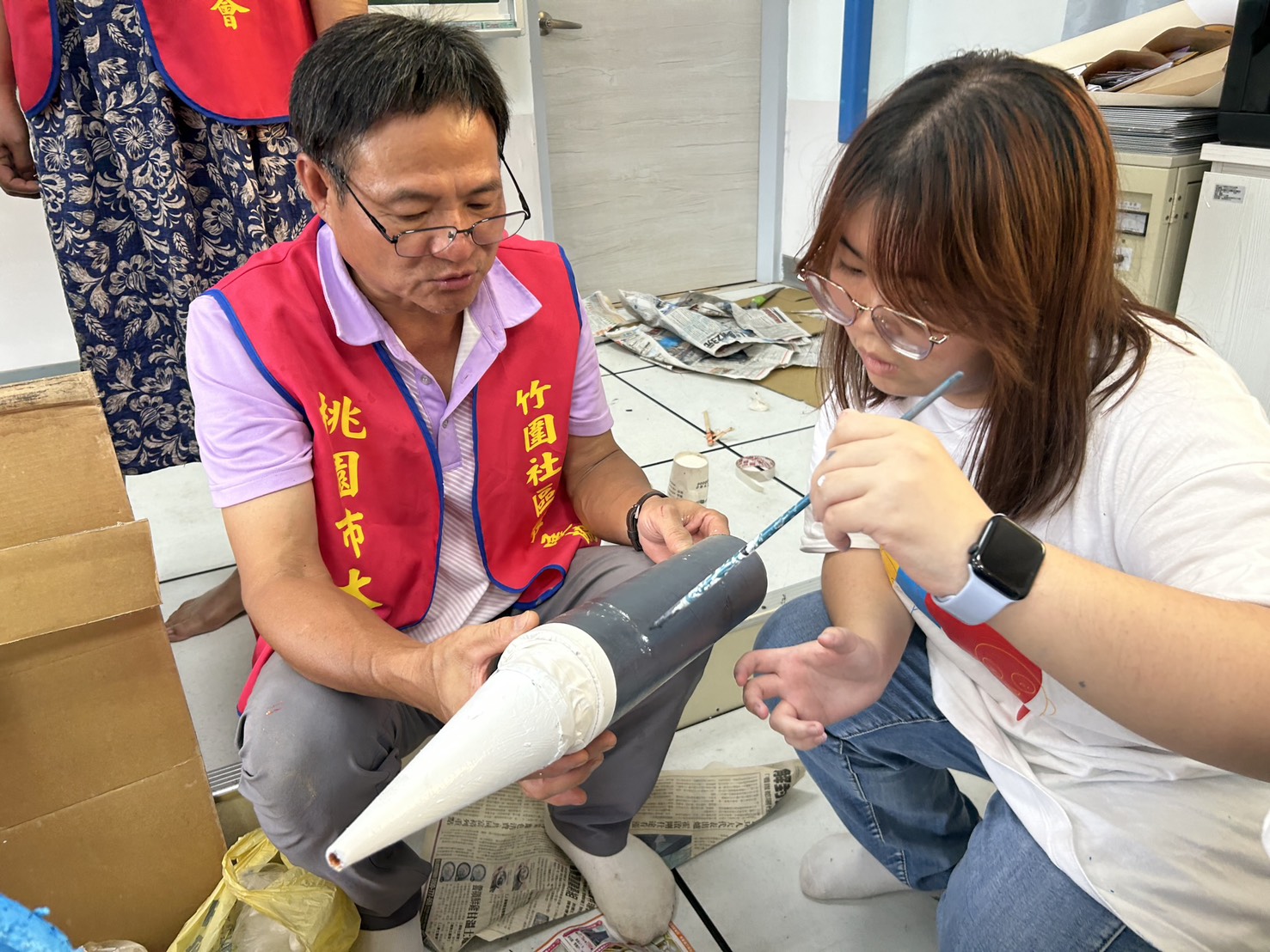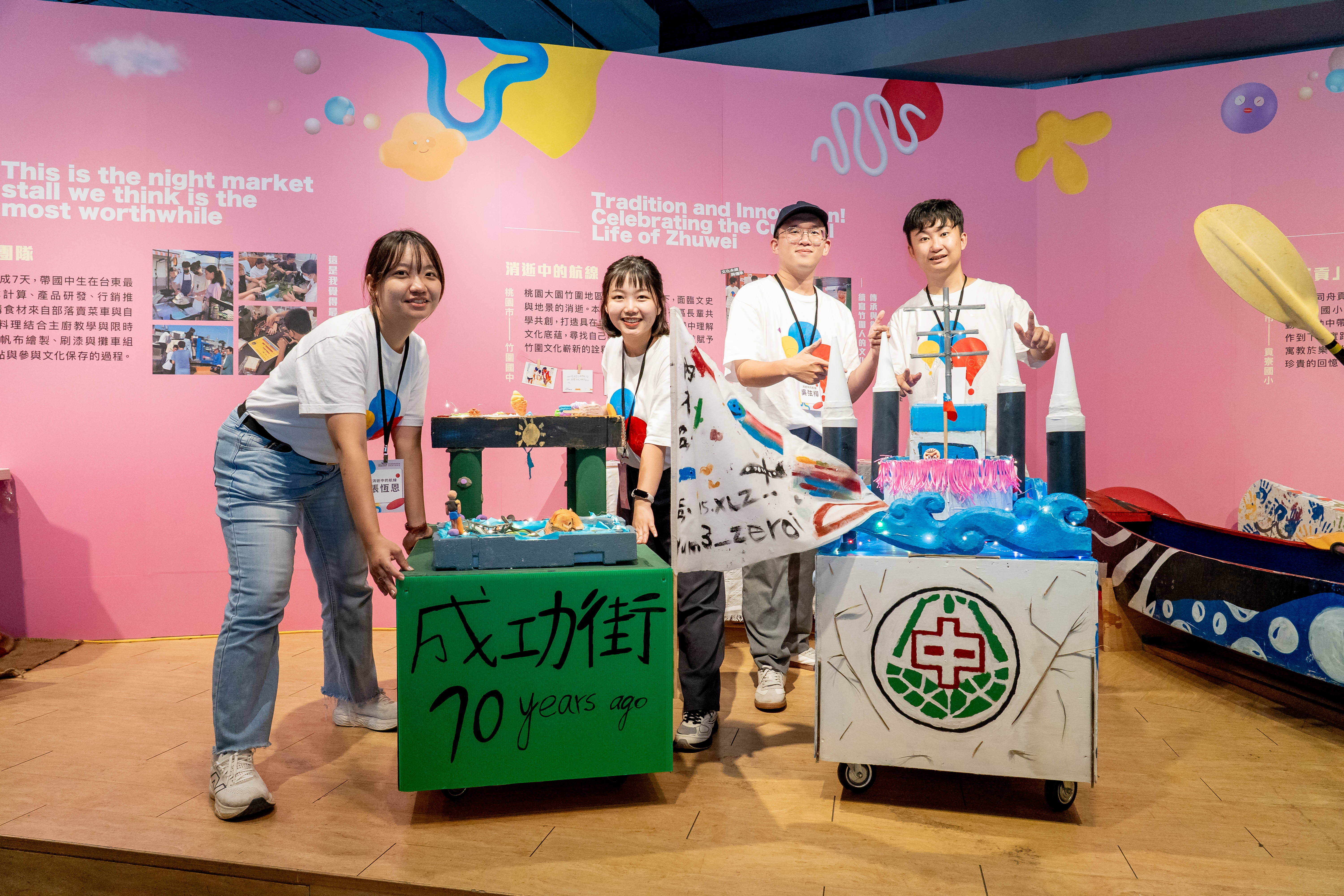 第九屆法藍瓷想像計畫團隊「消逝中的航線」,以桃園市竹圍國中與竹圍社區為核心,規劃六大主題課程,聚焦「地方文化永續與傳承」、「代間共學」與「社區共好」的精神。隨著桃園航空城計畫推動,竹圍社區正面臨快速且劇烈的轉變,過往與文化慶典緊密相連的生活記憶,也逐漸從日常風景中淡去,使在地文化的保存與傳承成為亟待回應的重要課題。團隊透過陪伴孩子們深入探索竹圍的文化底蘊,以及與社區長輩攜手參與藝閣工藝的創作,讓原本屬於節慶與世代記憶的文化形式,在孩子的參與下,成為可以被延續、重新詮釋的共同經驗。